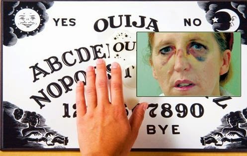 "Seu pai tem um aviso para você. Você está pensando em usar um tabuleiro Ouija, mas não precisa fazer. Você vai correr muito risco, se você usá-lo. Não ", disse o psíquico.
